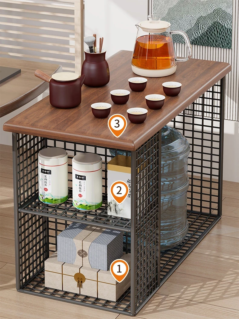 Compact Wooden Tea Table with Storage Rack - Stylish and Functional Tea Station for Small Living Rooms, Ideal for Cozy Spaces, Perfect as a Sofa Side Table