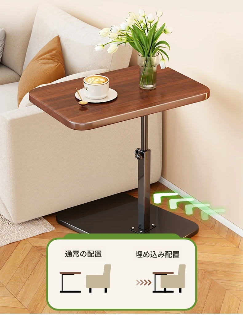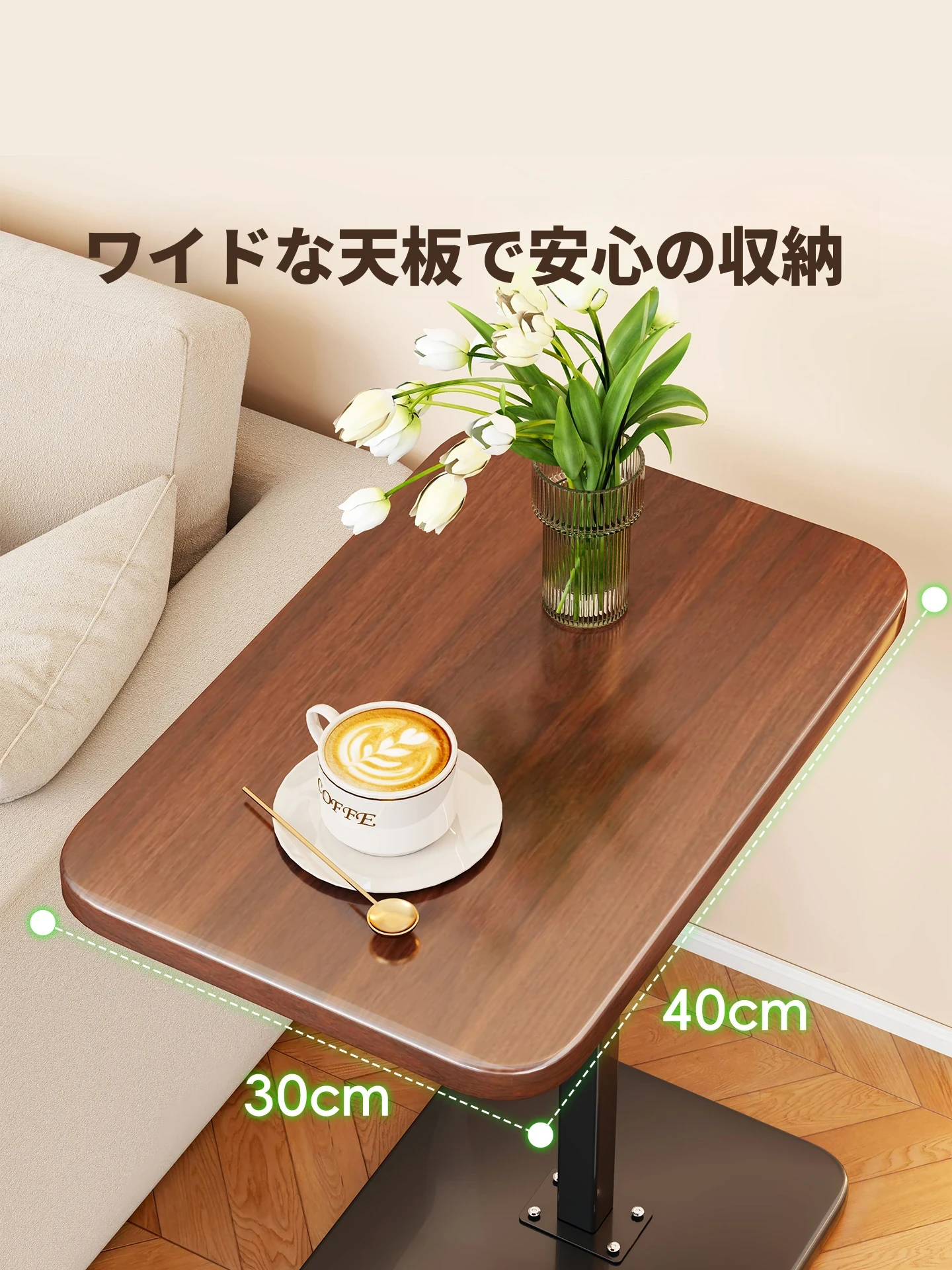 昇降式ソファサイドテーブル - おしゃれで便利!リビングや寝室に最適な移動可能な小型サイドテーブル。収納力抜群のサイドキャビネットとしても使用可能!あなたのライフスタイルを一新します!