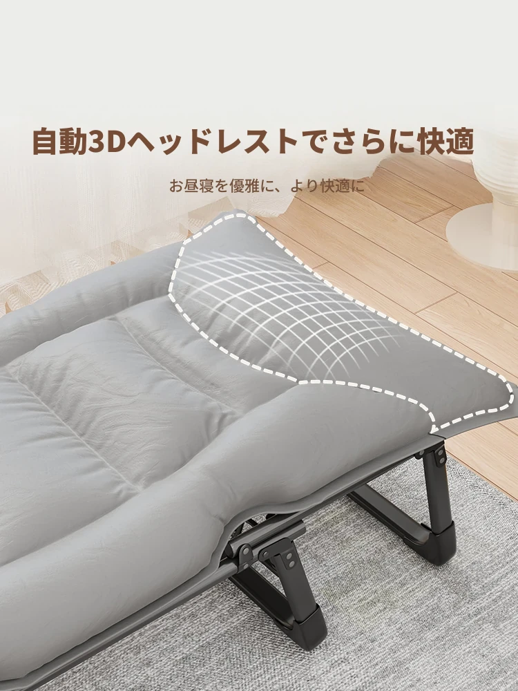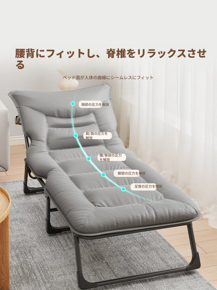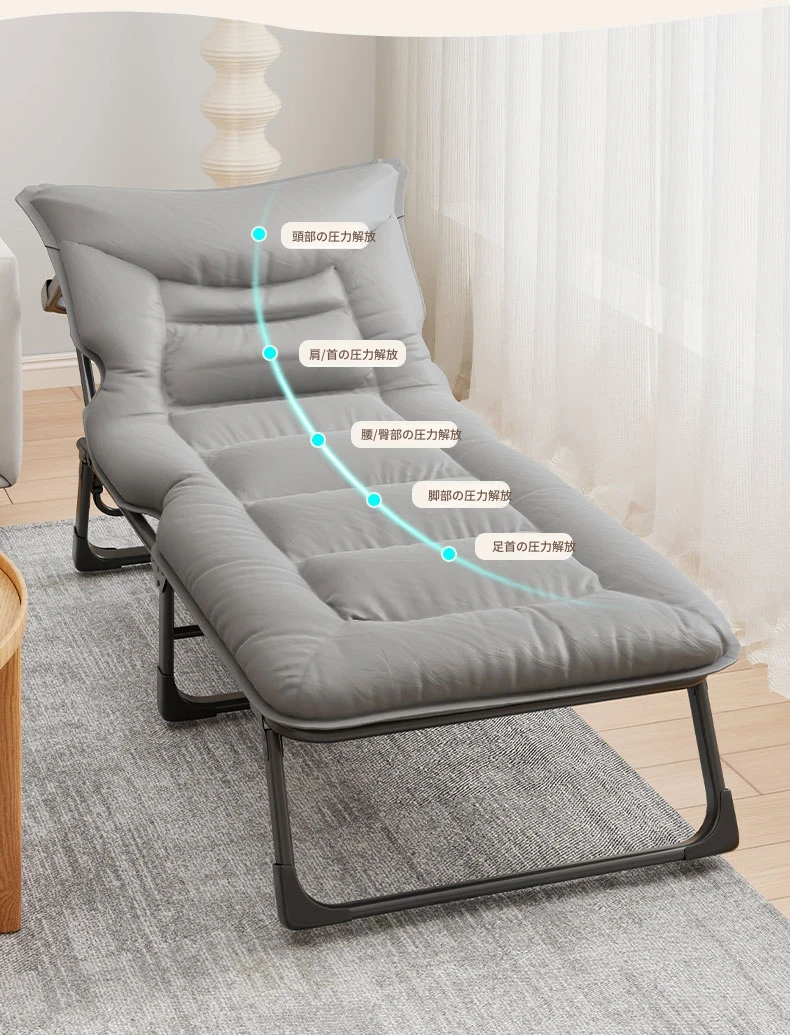 オフィスでの昼休みや自宅に最適!折りたたみ式シングルベッド、簡単に持ち運び可能なリクライニングチェア。夜勤や仕事中の仮眠にぴったりな便利アイテム!