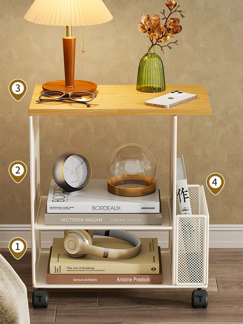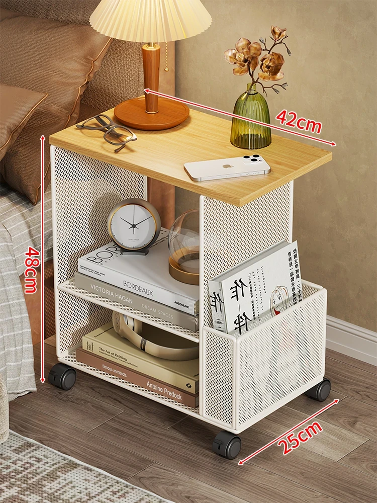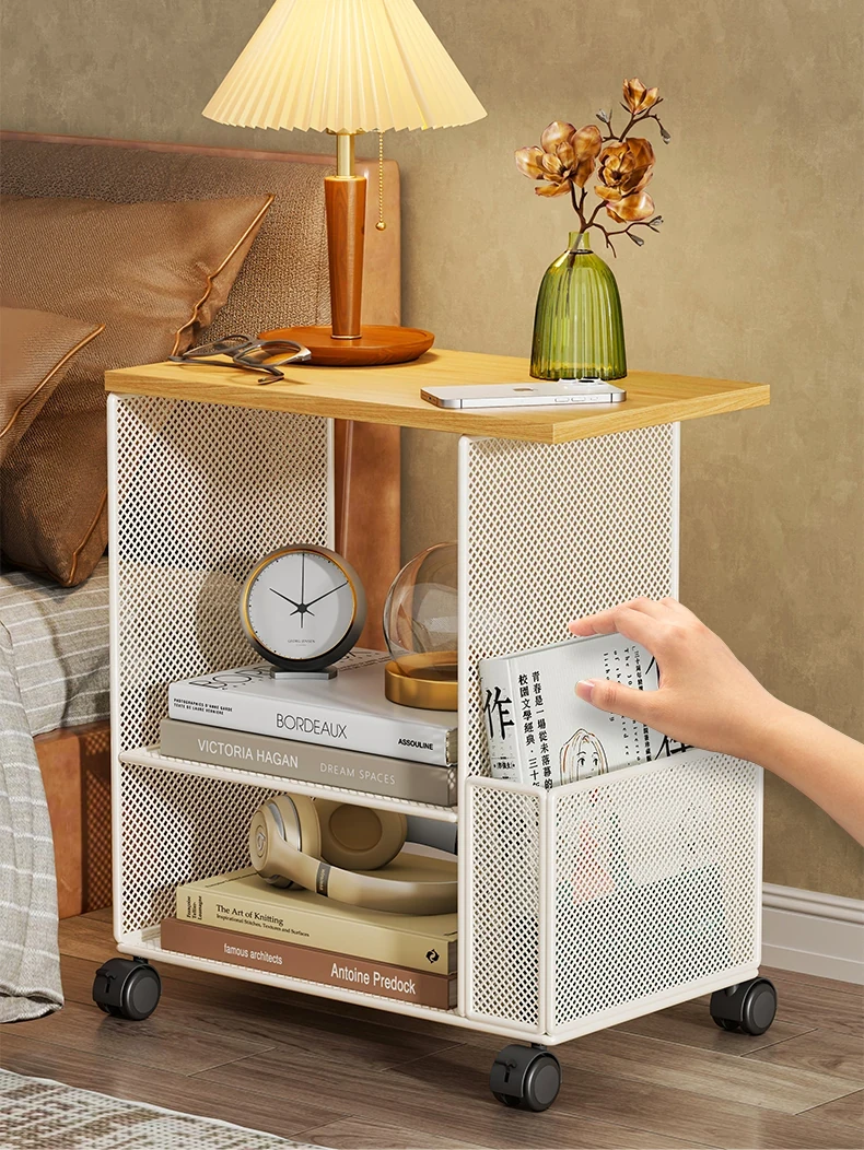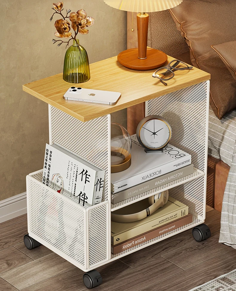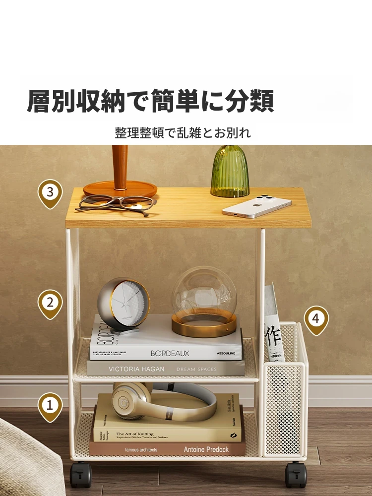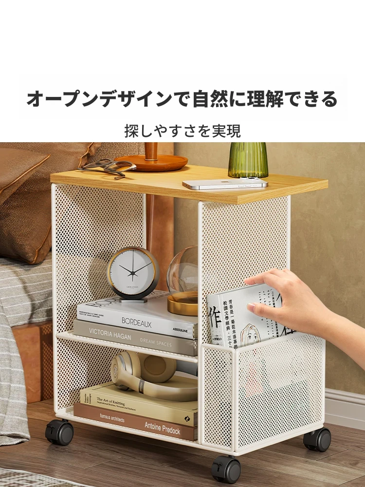 移動式ベッドサイドキャビネット|多層収納ラック|シンプルなベッドサイドマガジンスタンド|魅力的な収納キャビネット|小さなコーヒーテーブルとしても活躍!あなたの寝室をおしゃれに整えます!