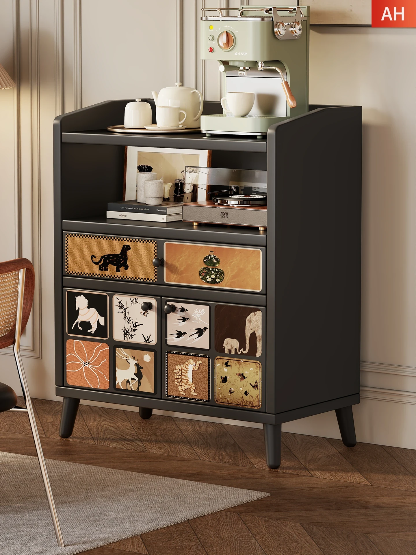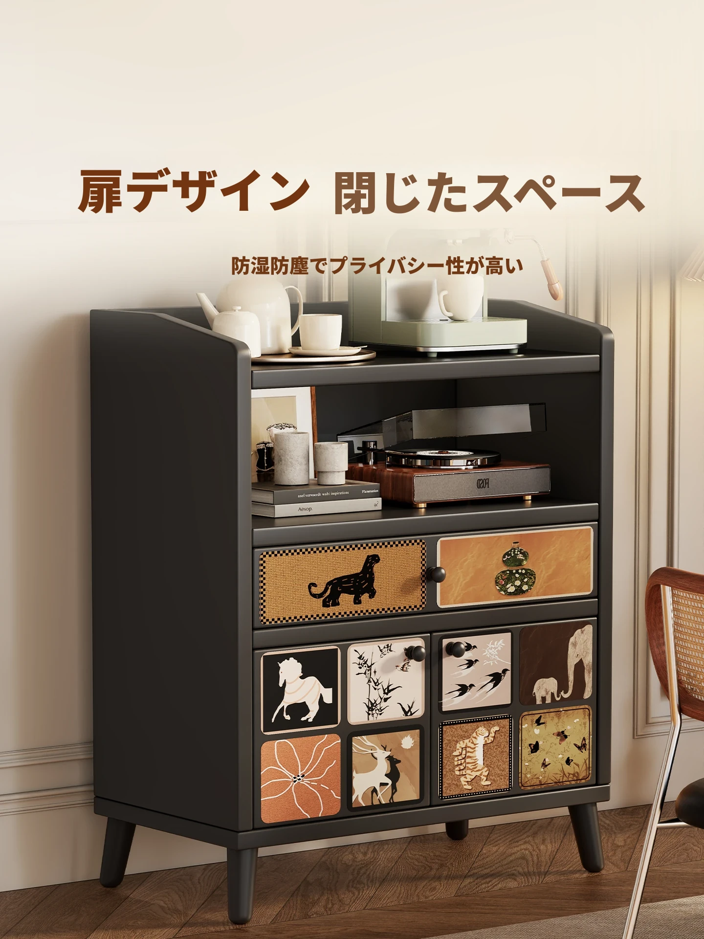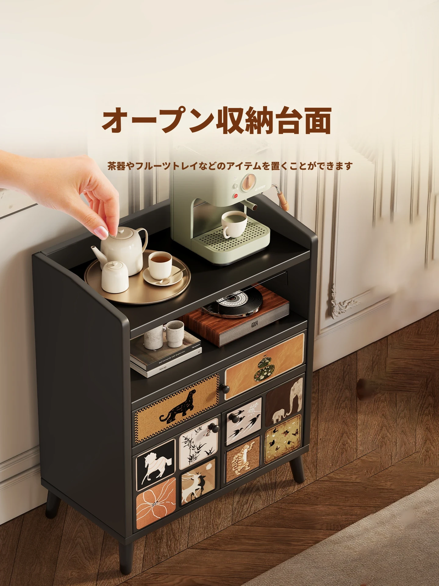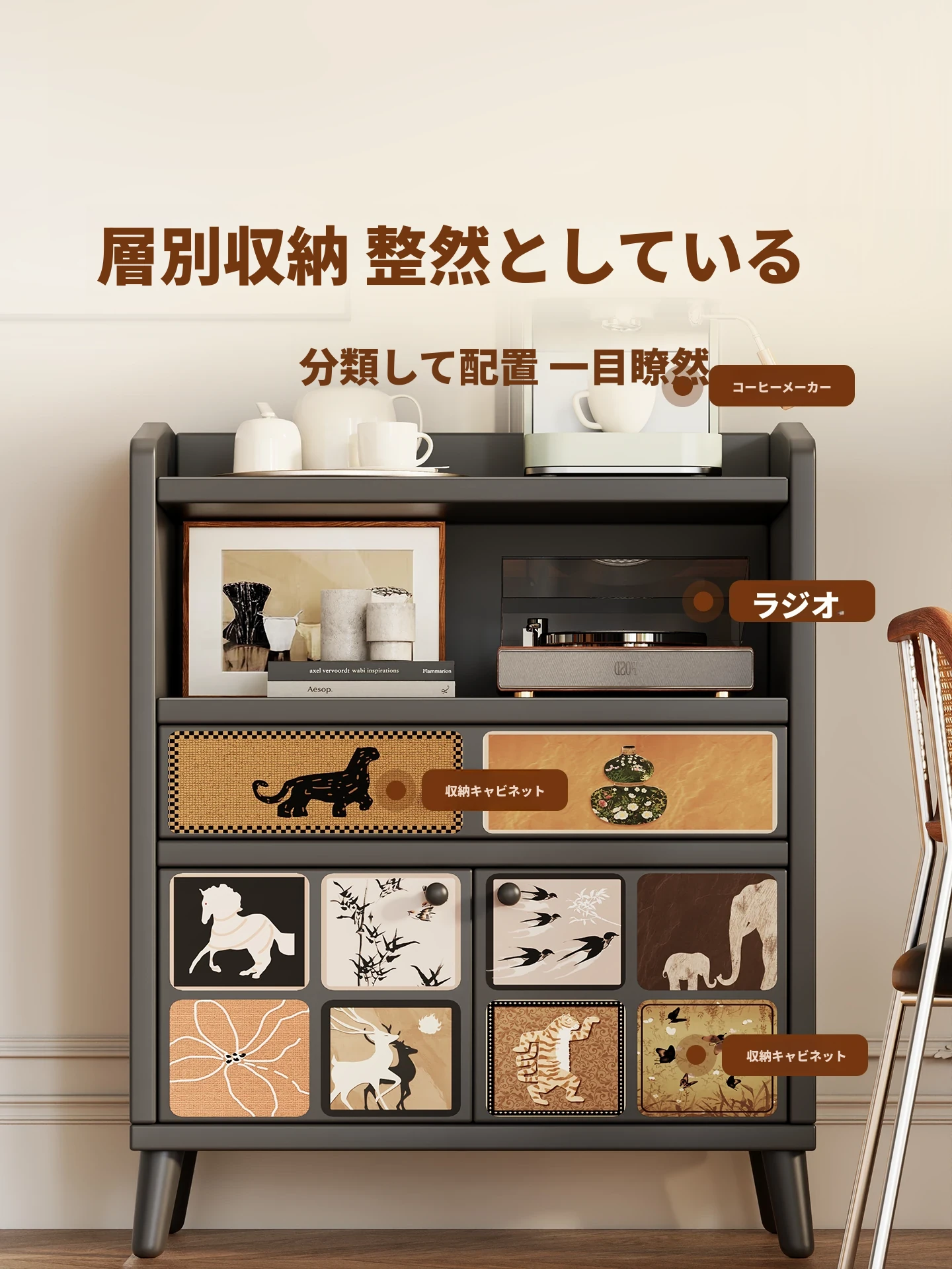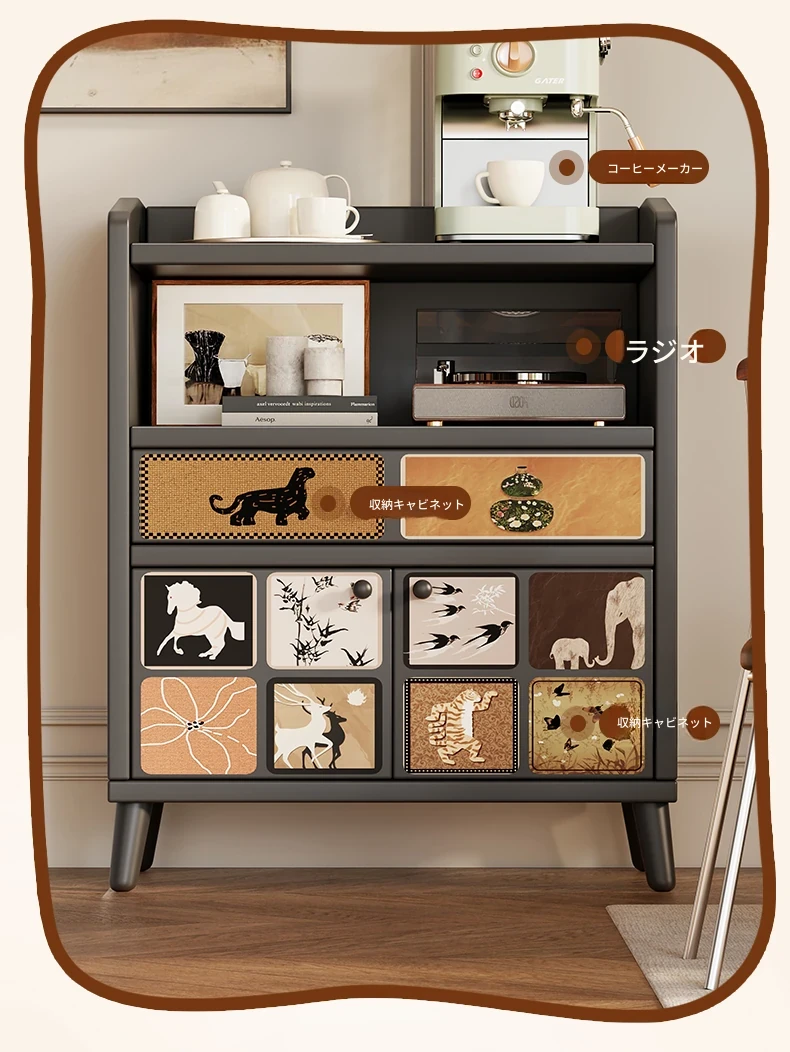 壁掛け収納キャビネット - 家庭用リビングルームに最適な多機能コーヒー&ティーキャビネット、スタイリッシュで実用的な収納ソリューション!