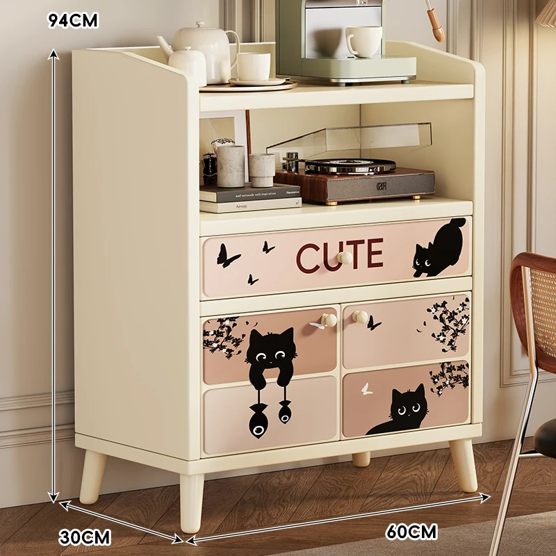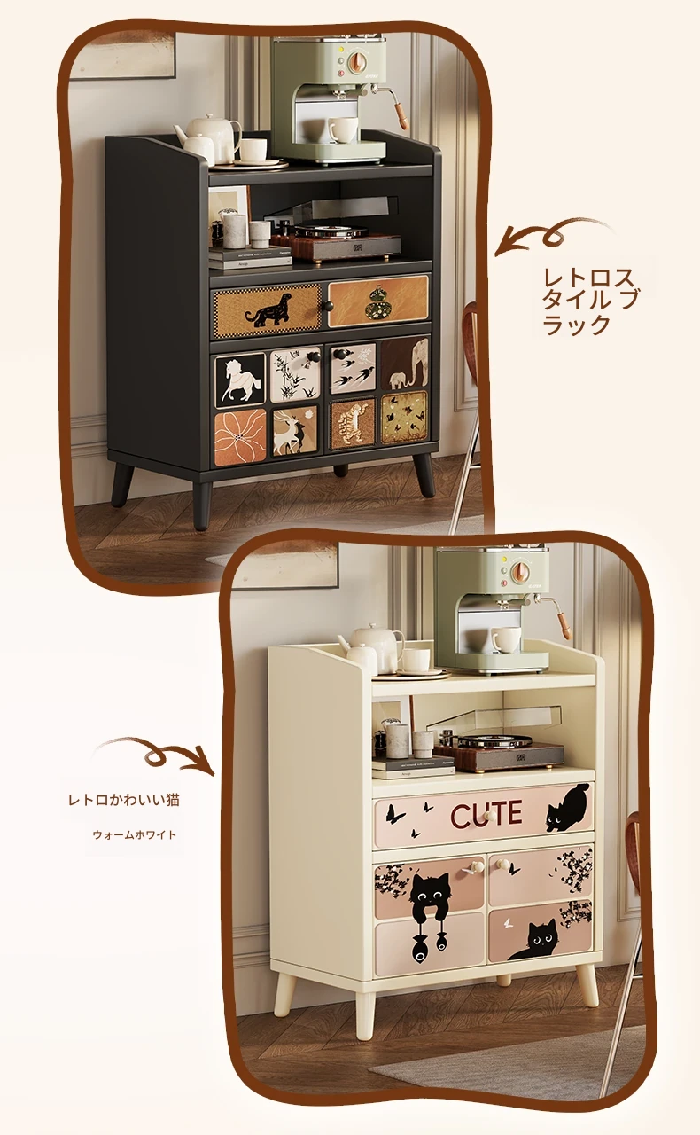 レトロかわいい猫⭐暖白【2ドア1引き出し】