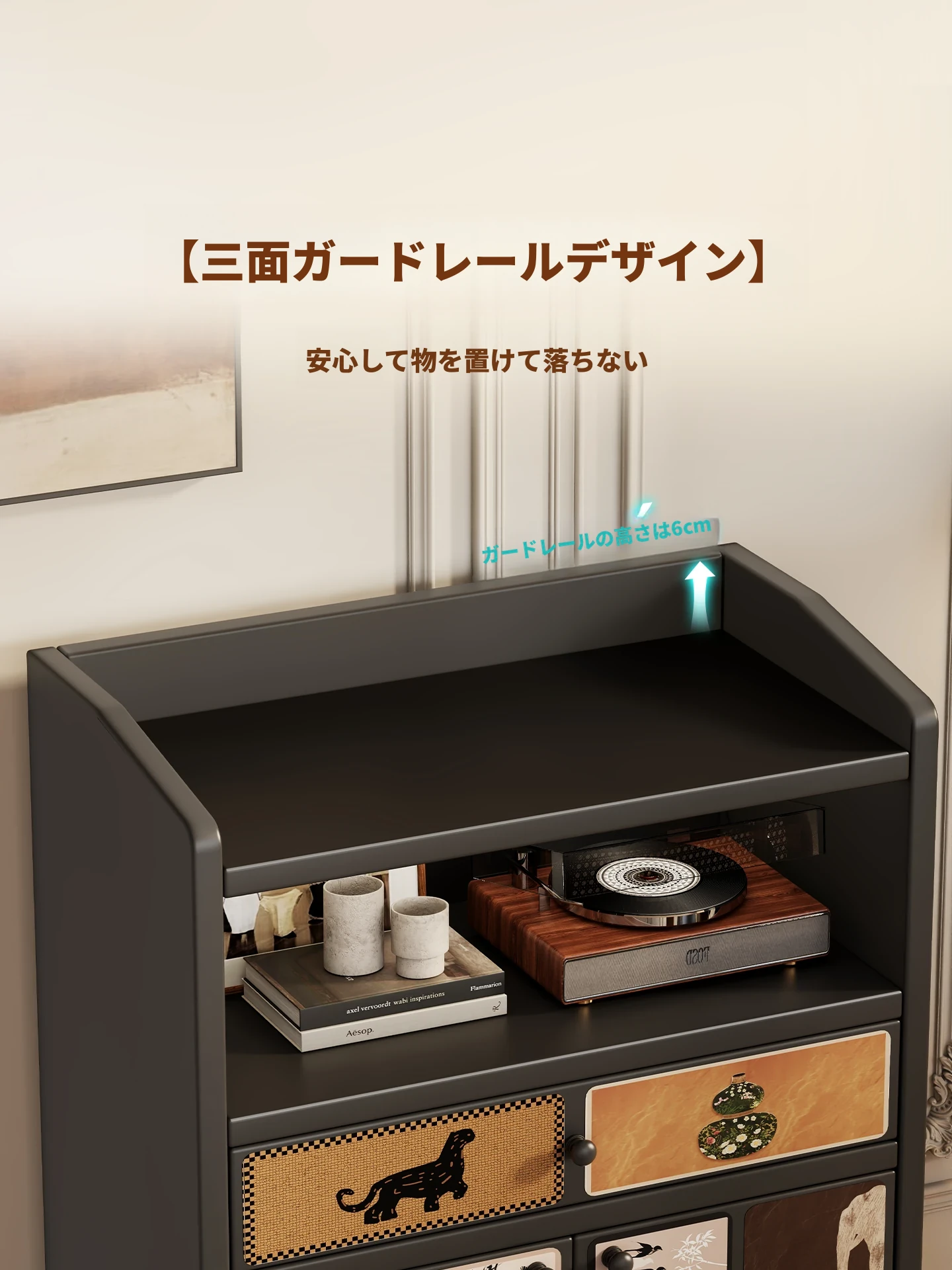 レトロチェック⭐黒【2ドア1引き出し】