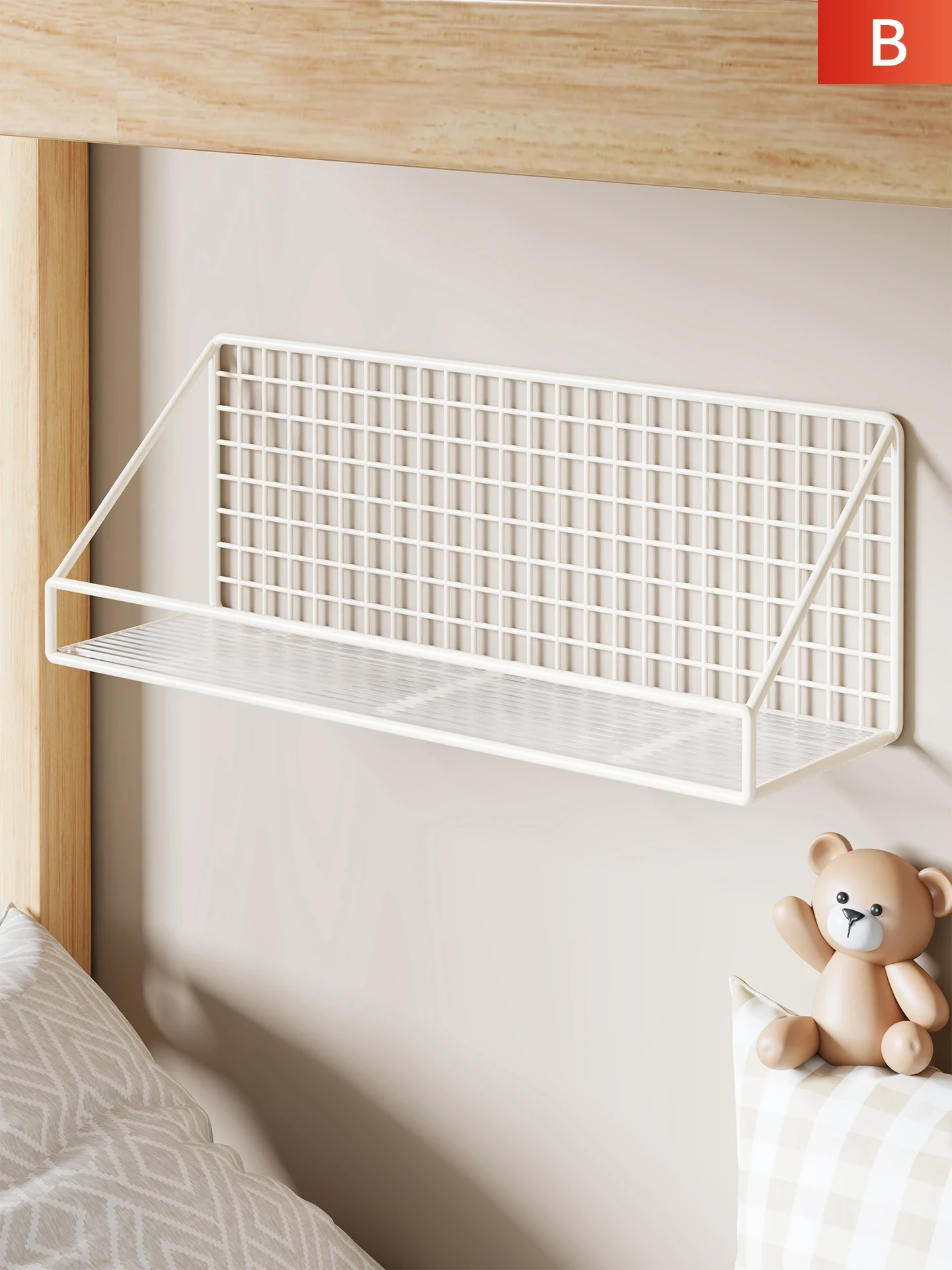 学生寮にぴったり!壁掛け収納ラック - 簡単設置、穴あけ不要!ベッドサイドや上段に最適な収納バスケットで、すっきり快適な空間を実現!