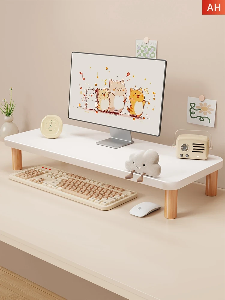 天然木製ノートパソコンスタンド - デスクトップをすっきり整理!モニターを最適な高さに引き上げ、快適な作業環境を実現。収納スペースも充実し、デザイン性も抜群!