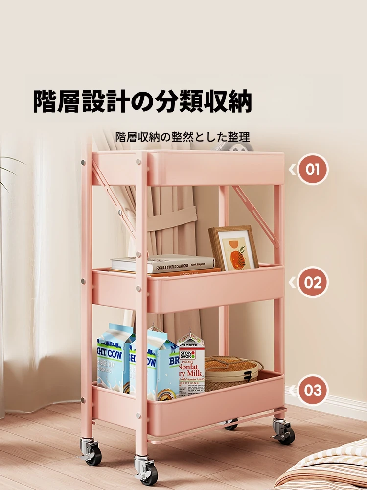 折りたたみ式多段収納ラック - リビングに最適!お菓子や本、キッチンの野菜をすっきり整理できる移動可能なフロアスタンド。お部屋をおしゃれに整頓し、生活空間をもっと快適に!