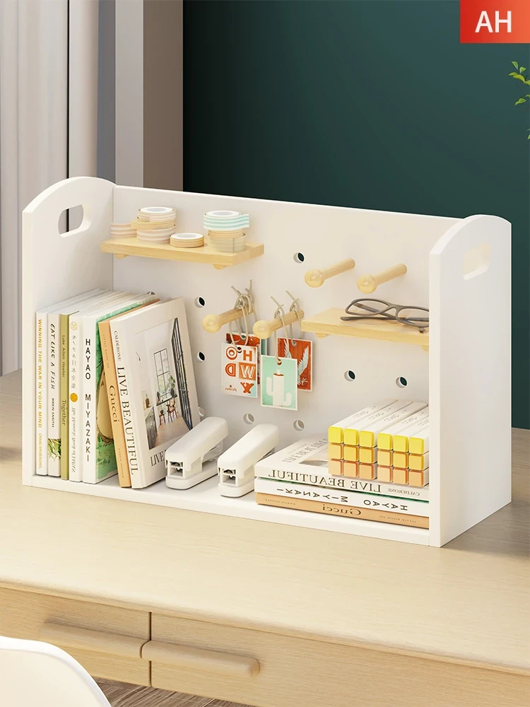 デスク用書棚 オフィスファイル用 穴あきボード装飾キャビネット 学生向け 家庭用 木製コンパクト書籍&試験用紙収納ラック - スタイリッシュで機能的な収納で、あなたの作業スペースをすっきり整理しましょう!