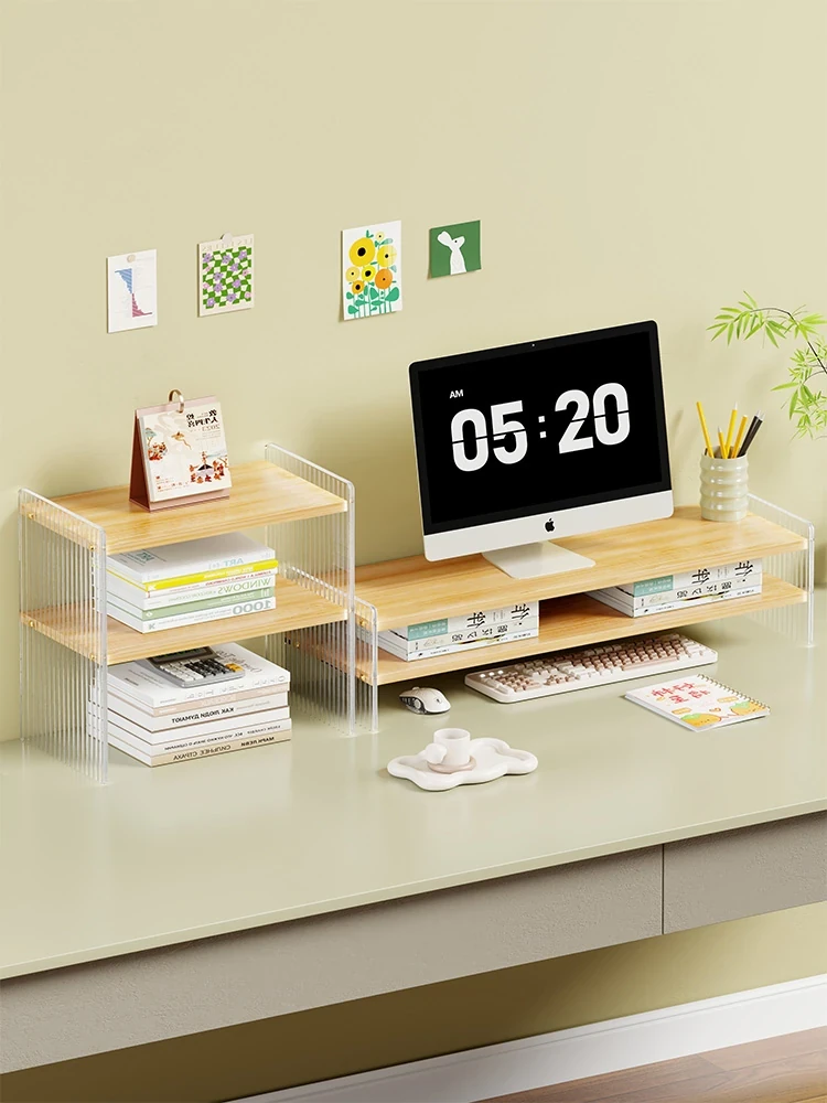 無垢材のデスク&収納ラック - デスク上の本立て&ファイル整理に最適!オフィスや化粧品収納にも使える、スタイリッシュで機能的な収納アイテム!