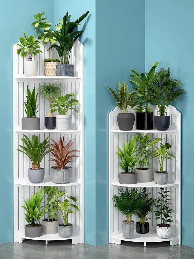 コーナーフラワースタンド 三角形の壁角収納ラック 室内・バルコニー用 おしゃれな観葉植物ラック 花瓶や鉢を美しくディスプレイ!リビングやベランダにぴったりのスタイリッシュなフラワースタンドです。