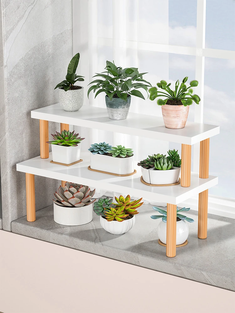 窓辺の多肉植物専用!おしゃれなフラワーラック - 2段式・多層設計で陽台や飾り棚にぴったり!お花を美しく飾ることができる、機能性とデザイン性を兼ね備えたアイテムです。