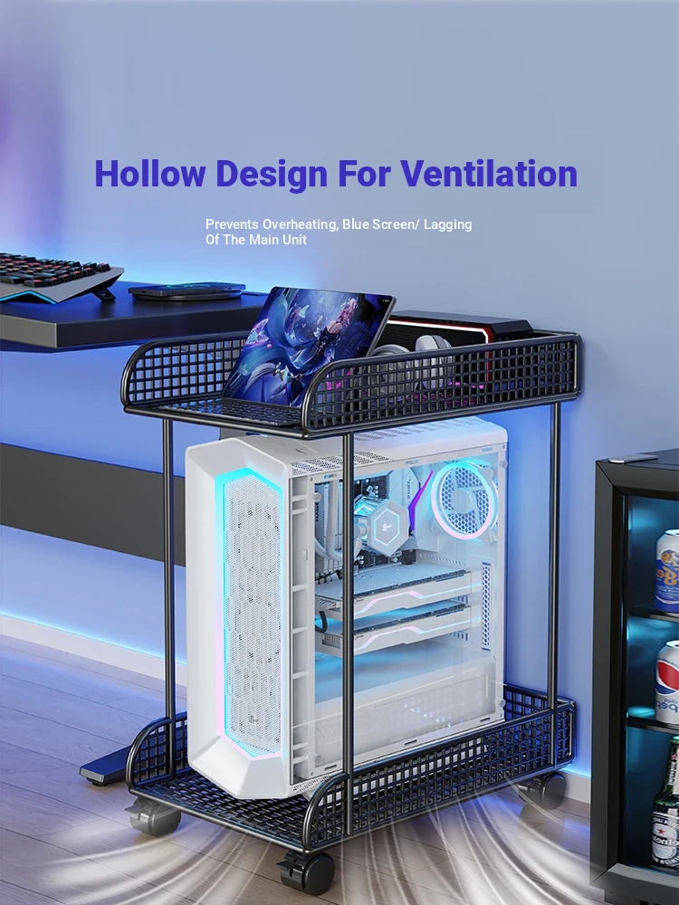 Multi-Layer Gaming PC Tower Stand with Wheels - Mobile Cooling Rack for Desktop Computer Chassis, Ideal for Gaming Rooms