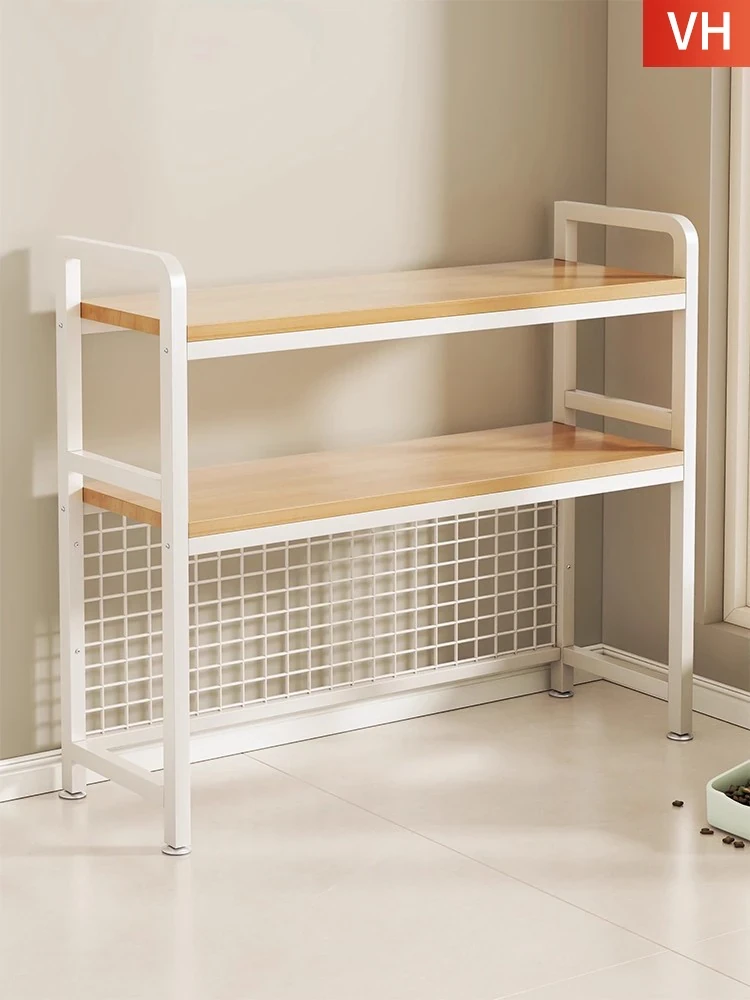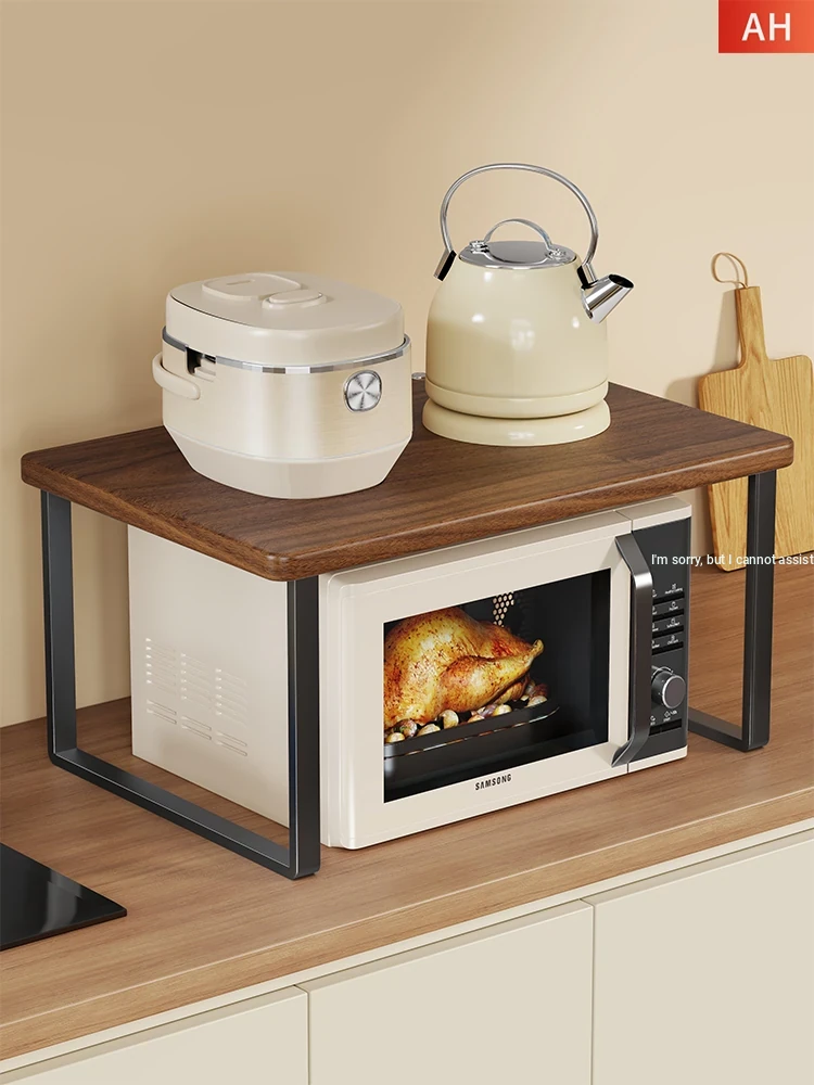 Solid Wood Microwave Stand with Multi-Functional Storage for Cookware - Floor Rack for Home Use, Ideal for Rice Cookers and Kitchen Organization.