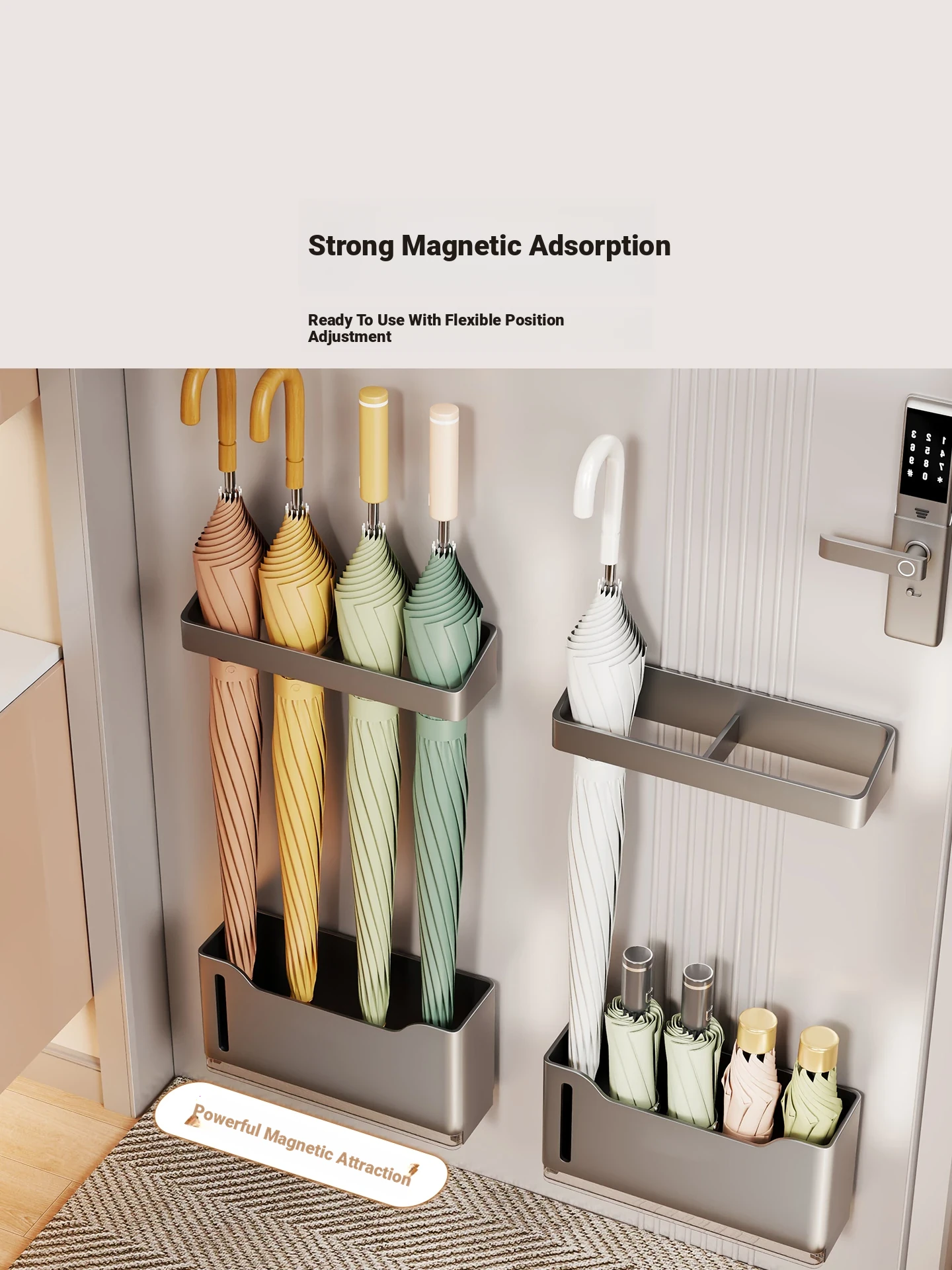 Magnetic Wall-Mounted Umbrella Rack for Entryway - Stylish and Functional Storage Solution for Home, Perfect for Organizing and Draining Wet Umbrellas, Space-Saving Design for Your Hallway or Doorway.