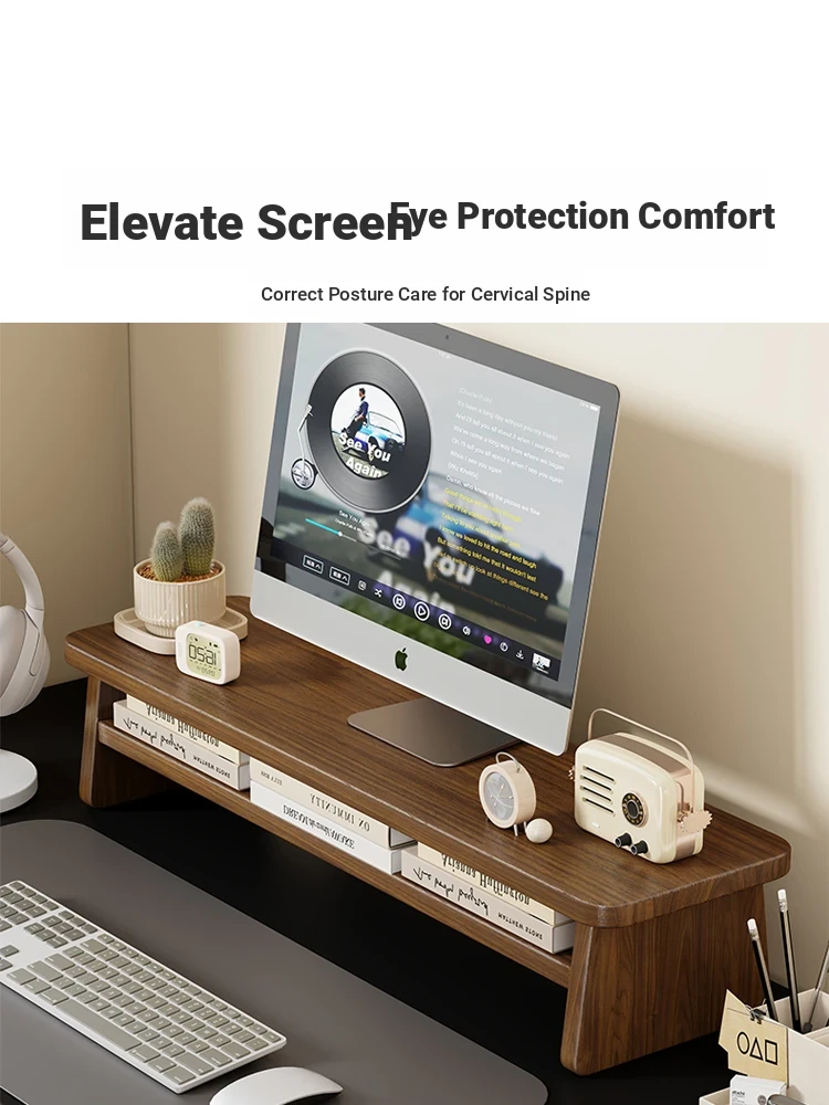 Solid Wood Monitor Stand - Ergonomic Laptop Riser for Office Desks, Supports Screens & Provides Extra Storage Space for a Neat Workstation.